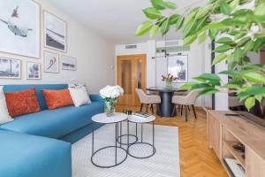 This air-conditioned apartment features one bedroom and a living room with two beds, complemented by a fully equipped kitchen that includes a dishwasher, oven, refrigerator, microwave, toaster, electric kettle, coffee machine as well as kitchenware and a dining table. The bathroom offers either a bath or shower along with a hairdryer. Additional in-room amenities include heating, air conditioning, wardrobe/closet, clothes drying rack, washing machine, towels and bed linen.