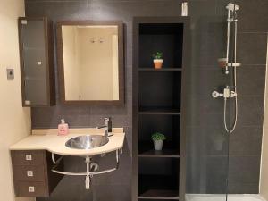 Inside, guests will find a well-equipped kitchen complete with a kitchenette for preparing meals. The apartment comprises one bedroom plus a living room furnished with a sofa bed and an additional rollaway bed to accommodate extra guests. Two private bathrooms provide complimentary toiletries along with shower facilities including body soap and shampoo. Additional amenities include heating, tile or marble flooring, a work desk, washing machine, wardrobe or closet space, non-feather synthetic pillows, bedside sockets for charging devices as well as air conditioning.