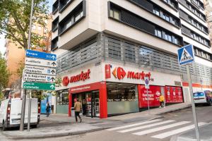 The apartment was clean, modern, and spacious with new furniture and a small kitchen that had everything needed to prepare food. The location was near the city centre with Avenida de América metro station nearby, allowing quick access to sightseeing and a Carrefour Market in the next building. The bed was big with premium linens, the bathroom was huge with amazing shower pressure, and the washer/dryer was convenient.