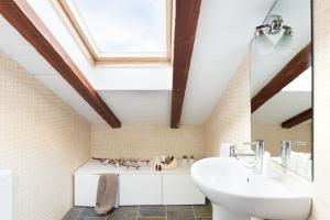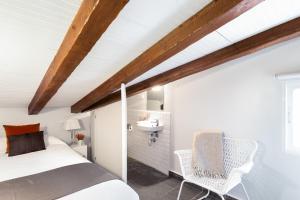 The attic apartments feature one double bedroom with sloping ceilings, particularly noticeable in the kitchen, bathroom, and bedroom areas. The accommodation includes a private bathroom with a shower, towels, heating, an iron, wardrobe or closet space, safety deposit box for valuables and non-feather pillows. Living spaces offer seating areas along with flat-screen satellite TV and DVD players.
