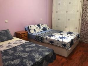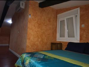 Accommodation options include a double room with one bed and shared bathroom facilities featuring a bathtub and bidet. The triple room offers two beds, heating, a flat-screen TV, air conditioning, wardrobe space, and a private bathroom with shower and bidet overlooking a quiet street view. The family room has four beds along with heating, air conditioning, wardrobe storage, flat-screen TV and an en suite shower.