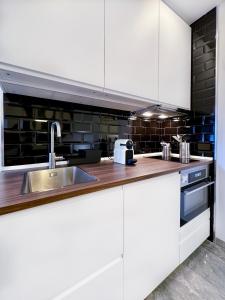 Wnętrze apartamentu obejmuje dwie łazienki wyposażone w wannę lub prysznic oraz suszarkę do włosów, goście otrzymują ręczniki i pościel. W pełni wyposażony aneks kuchenny zawiera nowoczesne urządzenia: płytę grzewczą, piekarnik, mikrofalówkę, lodówkę, zmywarkę, toster, ekspres do kawy oraz czajnik elektryczny wraz z kompletnym zestawem naczyń kuchennych.