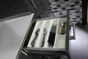 The fully equipped kitchen contains essentials including an oven, refrigerator, microwave, toaster, kitchenware along with tea and coffee making facilities complemented by a dining table for meals. The bathroom offers both bathtub and shower options plus complimentary toiletries and hairdryer, notably this unit also boasts an in-room hot tub for relaxation.