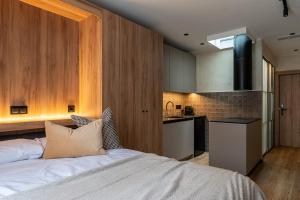Jedes Studio ist mit einem Bett ausgestattet und verfügt über ein eigenes Badezimmer mit ebenerdiger Dusche und Haartrockner sowie eine individuell regulierbare Klimaanlage und Heizung. Die voll ausgestatteten Kochnischen beinhalten Kochfelder, Kühlschränke, Backöfen, Mikrowellen, Toaster sowie Kaffeemaschinen inklusive Küchenutensilien für Selbstverpflegung. Weitere Ausstattungsmerkmale sind Sofas, Kleiderschränke oder Schränke, Wäschetrockner, Bügeleisen mit Bügelbrett sowie allergikerfreundliche Kissen auf Betten mit bereitgestellten Handtüchern.
