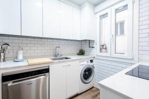 The apartment is situated within easy reach of several key landmarks, including El Retiro Park at 4.1 km, Gran Via Metro Station at 4.4 km, Santiago Bernabéu Stadium at 4.9 km, Gran Via itself at 5 km, and Plaza de España Metro Station located 6.3 km away. Adolfo Suarez Madrid-Barajas Airport lies about 9 km from the accommodation.