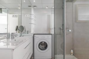 Accommodation consists of one bedroom with one bed and features air conditioning alongside essentials such as a washing machine and wardrobe/closet space. The bathroom includes a shower, toilet, and hairdryer while the living area has a flat-screen TV for entertainment.