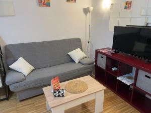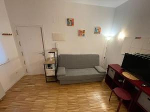 The apartment comprises one bedroom furnished with a bed and wardrobe, alongside a bathroom equipped with a shower, bathtub or shower option, complimentary toiletries including shampoo and body soap, as well as a hairdryer. A fully equipped kitchenette features a stovetop, refrigerator, microwave, toaster, electric kettle and kitchenware for meal preparation. Additional in-room amenities include heating, an iron, clothes drying rack, sofa seating area on hardwood flooring, synthetic non-feather pillows as well as bed linen and towels.
