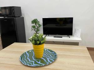 The accommodation features one bed with air conditioning and heating to ensure comfort year-round. Guests can enjoy a seating area with a flat-screen TV and a sofa bed on hardwood flooring alongside a wardrobe or closet for storage needs. The unit is wheelchair accessible throughout and includes a washing machine as well as baby cot availability.