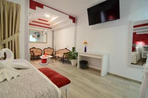 Die Unterkunft verfügt über Zimmer, die in Weiß- und Rosatönen gestaltet sind und entweder Parkett- oder Fliesenböden besitzen. Jedes Zimmer ist ausgestattet mit einem Safe für Laptops, individuell regulierbarer Klimaanlage, Heizung, Schreibtisch, Kleiderschrank oder Garderobenbereich sowie Bügeleisen mit Bügelbrett sowie Bettwäsche und Handtüchern. Zur Küchenausstattung gehören Wasserkocher und Kühlschrank in allen Einheiten. Die privaten Badezimmer verfügen über Dusche oder Bidet sowie kostenlose Pflegeprodukte wie Körperseife und Shampoo sowie Haartrockner.