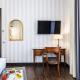 Dining options include a restaurant serving creative international cuisine alongside a bar where snacks and drinks are available. Additional amenities comprise a fitness centre with sauna on the same floor as some suites featuring private terraces overlooking the area. The hotel also provides services like room service around the clock, daily housekeeping, laundry and ironing services. Wi-Fi covers all areas while reception operates twenty-four hours offering concierge assistance, lift access serves all floors.