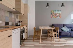 Das gut ausgestattete Apartment verfügt über ein Schlafzimmer mit drei Betten sowie ein eigenes Badezimmer mit Dusche oder Badewanne/Dusche zur Auswahl. Zur Ausstattung im Bad gehören zudem Haartrockner sowie Körperseife, Shampoo und Conditioner für den Komfort der Gäste. Die voll eingerichtete Küche umfasst einen Backofen, Mikrowelle, Geschirrspüler, Toaster sowie Tee- und Kaffeezubereitungsmöglichkeiten inklusive Kaffeemaschine und Wasserkocher. Ein Kühlschrank sowie Küchenutensilien ermöglichen selbstständiges Kochen.