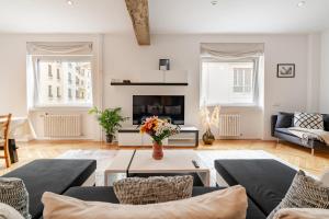 Das geräumige Apartment umfasst ein Wohnzimmer sowie drei separate Schlafzimmer mit insgesamt vier Betten. Den Gästen stehen drei Badezimmer mit Badewannen, Duschen sowie kostenfreien Pflegeprodukten wie Duschgel, Shampoo und Conditioner sowie Haartrocknern zur Verfügung. Die voll ausgestattete Küche beinhaltet Kühlschrank, Backofen, Geschirrspüler, Mikrowelle sowie Tee- und Kaffeezubereitungsmöglichkeiten.