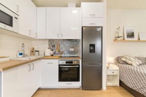 The studio includes two beds with bed linen provided, a seating area with a sofa and sofa bed, as well as ironing facilities including an iron and ironing board. Guests will find a washing machine, wardrobe, tumble dryer for clothes, flat-screen TV, non-feather synthetic pillows, towels and complimentary toiletries in the private bathroom fitted with a shower and hairdryer.