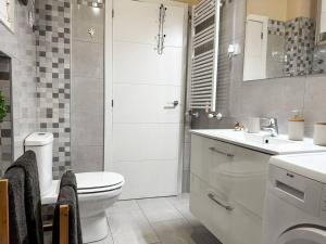 Inside the apartment, guests will find three beds along with amenities including a washing machine, coffee machine, seating area, work desk, dressing room, sofa bed, and an iPad. The bathroom contains a bathtub or shower with body soap, shampoo, toilet facilities and a hairdryer to ensure comfort during your stay.