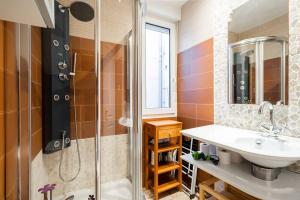 Uvnitř apartmánu najdete plně vybavený kuchyňský kout s troubou, lednicí a zařízeními na přípravu čaje i kávy. Ubytování zahrnuje jednu postel a disponuje vytápěním, pračkou, ručníky, povlečením i žehličkou pro větší pohodlí. Pro zajištění komfortu během pobytu je k dispozici klimatizace. Koupelna obsahuje základní potřeby jako fén na vlasy, šampon a sprchový gel.