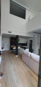 This spacious apartment comprises two separate bedrooms, a living room, and two bathrooms equipped with both bath and shower facilities. Guests can prepare meals in the fully equipped kitchen featuring a refrigerator, dishwasher, oven, microwave, coffee machine, toaster, dining table, kitchenette area and high chair for children. In-room amenities include air conditioning heating seating area soundproofed rooms ironing facilities with iron and board towels sofa non-feather pillows washing machine as well as television with flat-screen display and streaming services.