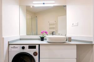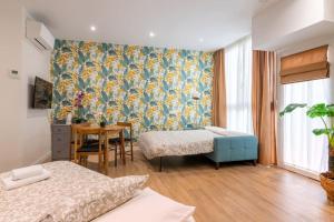 Das Studioapartment bietet zwei Betten sowie Klimaanlage und Heizung für ganzjährigen Komfort. Die voll ausgestattete Küche umfasst einen Kühlschrank, Geschirrspüler, Mikrowelle sowie Tee- und Kaffeezubereitungsmöglichkeiten, ergänzt wird sie durch einen Wäschetrockner. Weitere Ausstattungsmerkmale im Zimmer sind Bügeleisen, Waschmaschine, Handtücher, Bettwäsche sowie ein Kinderbett.