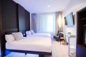 Hotel dysponuje 100 dźwiękoszczelnymi pokojami o nowoczesnym wystroju, z widokiem na miasto lub na dziedziniec. Petit Palace President Castellana znajduje się tuż przy Plaza de Colón oraz tylko 500 metrów od stacji metra Rubén Darío. W promieniu 2 km znajdują się słynna fontanna Cibeles i park Retiro, co zapewnia łatwy dostęp do najważniejszych atrakcji Madrytu.