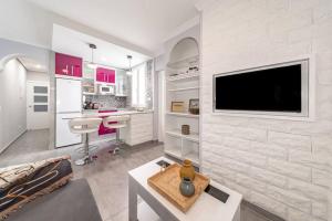 Accommodation includes one separate bedroom and a living room with sofa bed, along with a private bathroom stocked with complimentary toiletries such as shampoo, conditioner, body soap and hairdryer. Guests can enjoy modern conveniences like individually controlled air conditioning for the room plus heating and tile or marble flooring throughout.