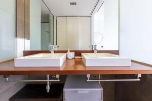 Zusätzliche Annehmlichkeiten umfassen private Badezimmer mit Dusche oder Badewanne sowie Haartrockner und Körperseife, Kleiderschränke, Sitzbereiche, Bügeleisen, Wäscheständer, Schreibtisch, Waschmaschine, Babybett auf Anfrage, Sofabereich, allergikerfreundliche synthetische Kissen ohne Federfüllung für zusätzlichen Komfort sowie Steckdosen am Bett zum Aufladen von Geräten. Ein Aufzug erleichtert den Zugang zur Wohnung. Möbel auf dem Balkon laden dazu ein, den Blick über die Skyline der Stadt zu genießen.
