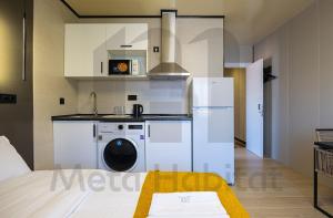 The accommodation also includes kitchen amenities comprising kitchenware, refrigerator, electric kettle as well as tea and coffee making facilities paired with a dining table for meals within the room itself.