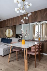 Kuchnia jest w pełni wyposażona we współczesne urządzenia: lodówkę, toster, piekarnik, suszarkę do ubrań, zestaw naczyń kuchennych oraz zmywarkę. Do dyspozycji gości są także urządzenia do przygotowywania herbaty i kawy - czajnik elektryczny oraz ekspres do kawy. Bezpłatne WiFi jest dostępne na terenie całego apartamentu, każdy pokój posiada prywatną łazienkę.