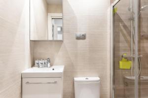 The accommodation comprises three bedrooms with five beds in total. Guests will find a fully equipped kitchen featuring a refrigerator, microwave, toaster, coffee machine, electric kettle as well as kitchenware for meal preparation. The apartment offers two private bathrooms fitted with showers or bathtubs along with hairdryers. Other room amenities include air conditioning, heating linens including towels and bed linen irons with ironing boards plus a washing machine.