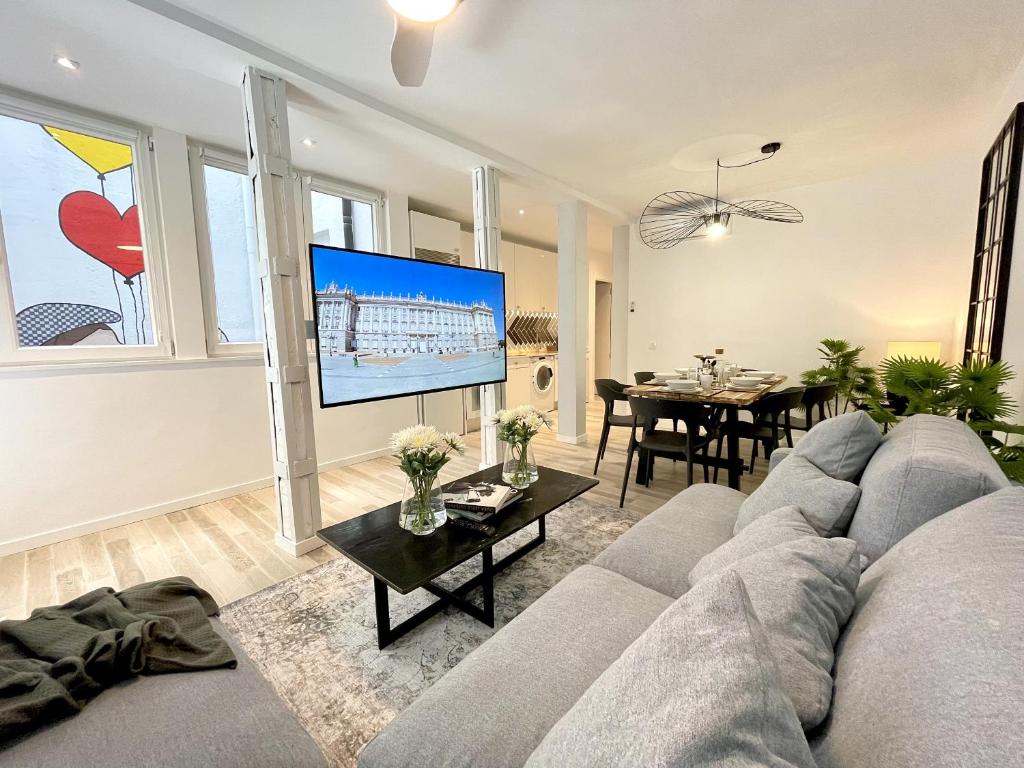 The apartment lies within close proximity to several prominent landmarks including the Temple of Debod at 1.2 km, Thyssen-Bornemisza Museum, Royal Palace of Madrid, and Mercado San Miguel. Adolfo Suarez Madrid-Barajas Airport can be reached within an 18 km journey.